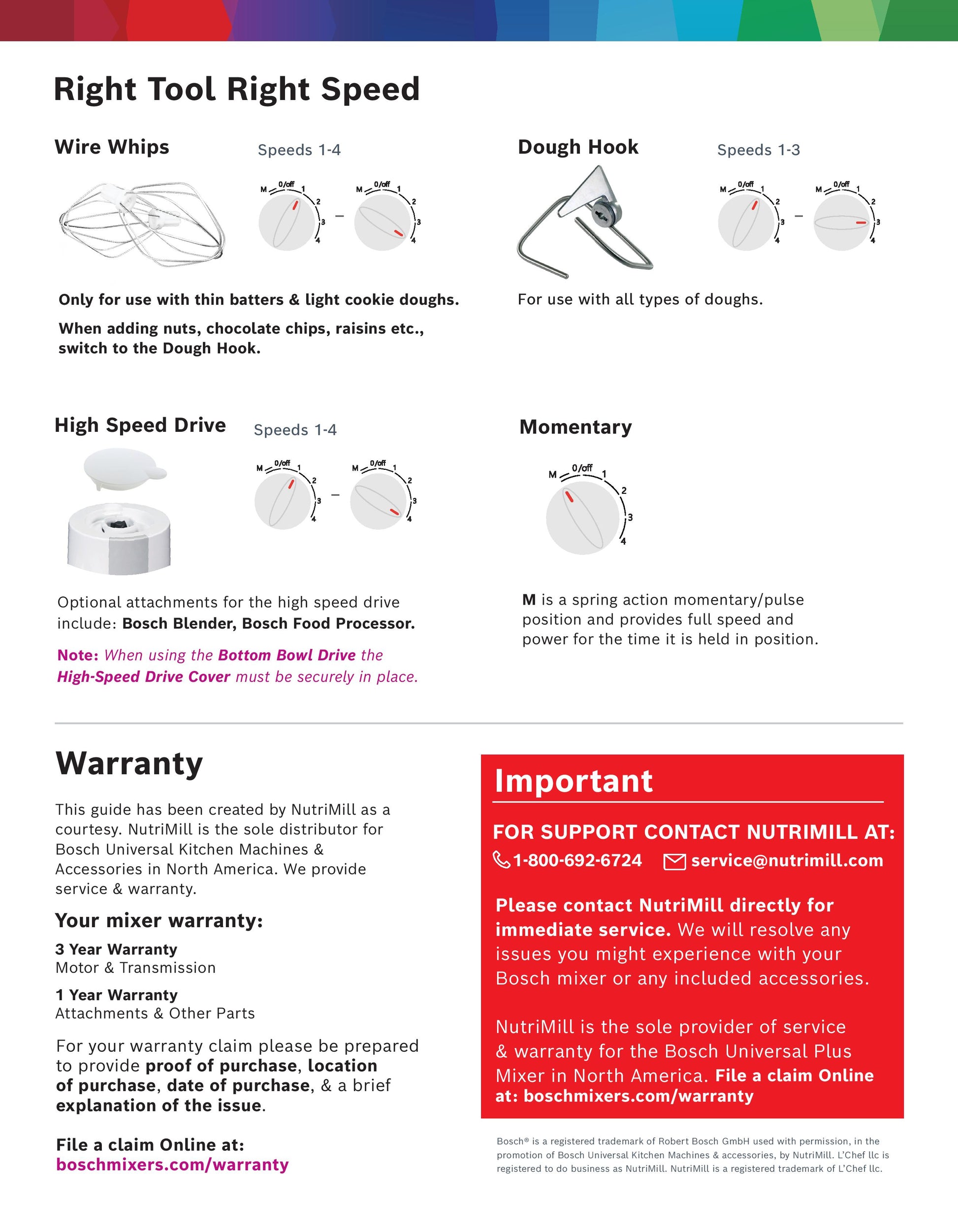 Dual wire whips create a triple whipping action and allow you to whip as little as one egg white into over a cup of meringue. The NutriMill Cookie Paddles (sold separately) are perfect for creaming butter and mixing medium to thick batters and cookie doughs. The NutriMill Cake Paddles (sold separately) thoroughly mix pourable batters or light mixtures without incorporating too much air. Ideal for quick breads, muffins, and pancakes which can become tough and chewy if over-mixed.