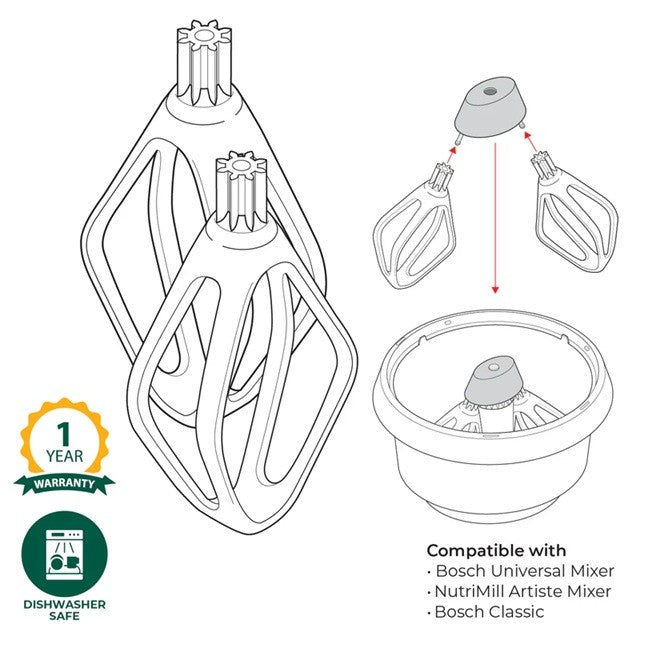 Compatible with Bosch Universal Plus Mixer, Bosch Universal Classic Mixer and NurtiMIll Artiste Mixer.